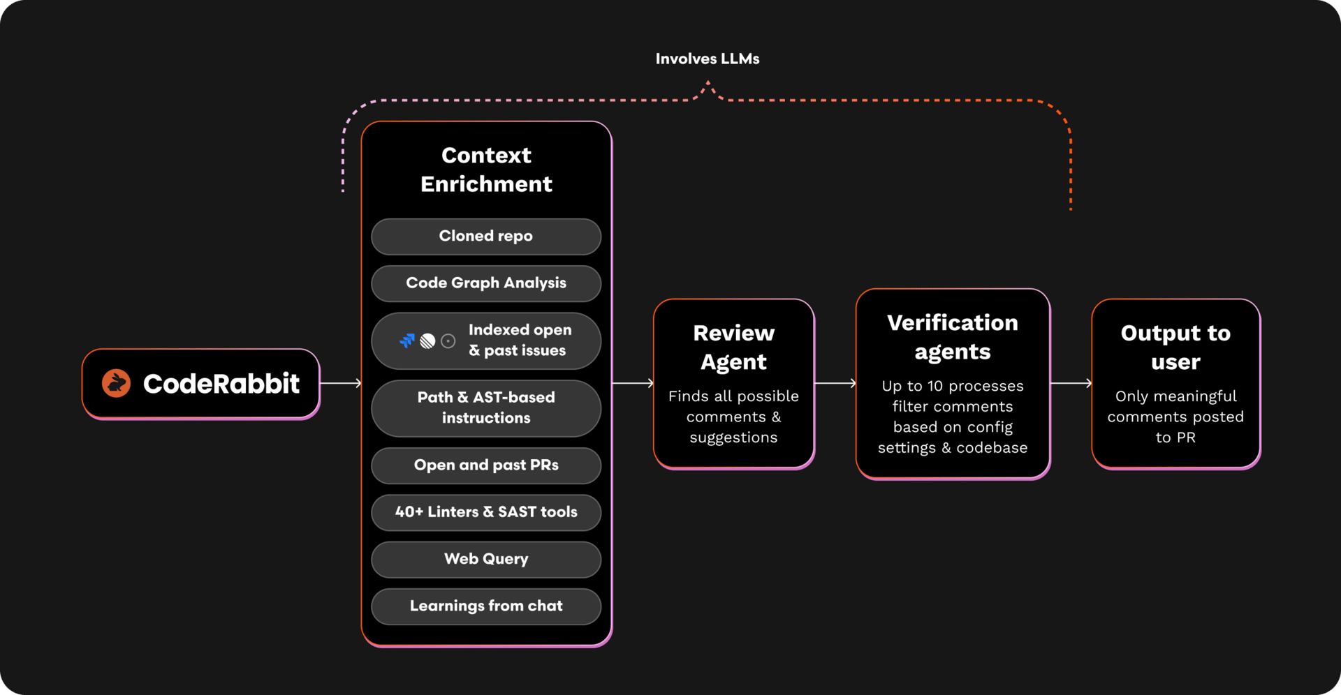 CodeRabbit is an AI code reviewer with a multi-layered approach to context preparation that addresses code quality challenges for orgs and delivers consistently high-quality code reviews.