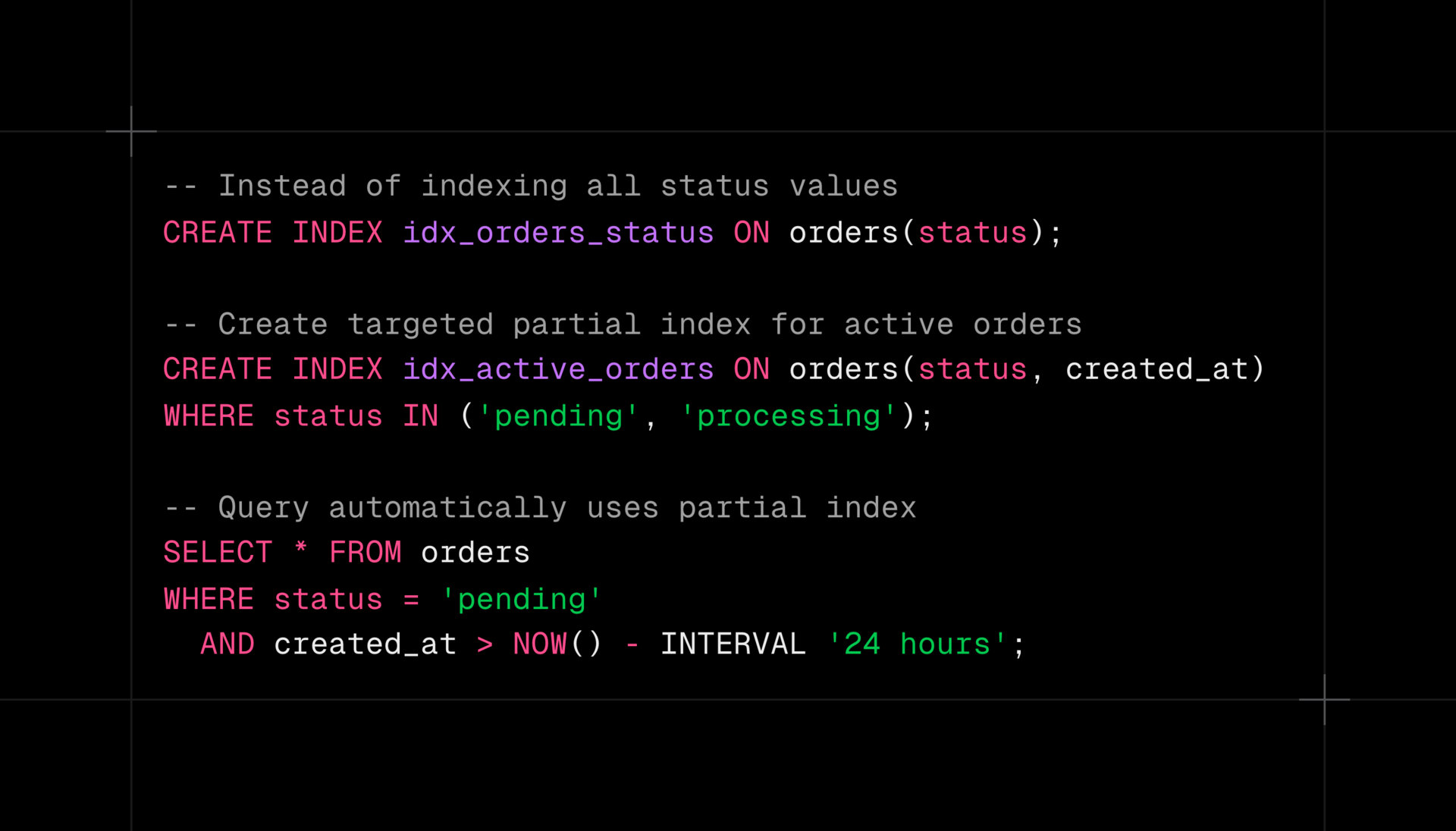 Use partial indexes in PostgreSQL to optimize query performance and reduce storage